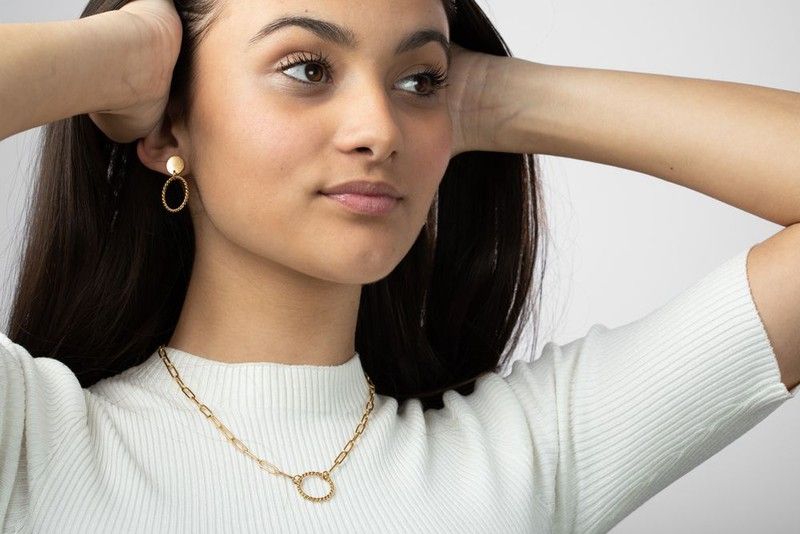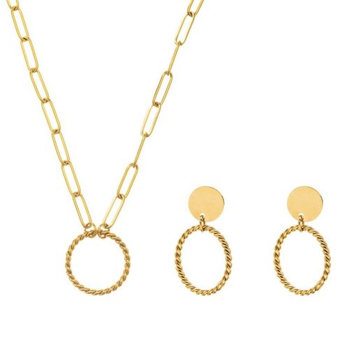- Collar y pendientes de acero dorado.